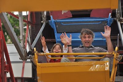 The Other Half had slept badly the night before and his shoulder ached. He allowed Our Daughter to drive in the dodgems. Can you see the "grimace" on his face as Our Daughter valiantly crashes into as many cars as she can! I keep my fingers crossed that she won't come into our bedroom at two in the morning complaining of a tummy ache!